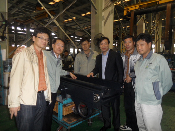 2013年11月6日,中天公司總經理受邀參加青島克拉克物流機械有限公司叉車主缸交付裝配儀式,并與青島克拉克總經理郭利鎬先生在生產現場合影留念。